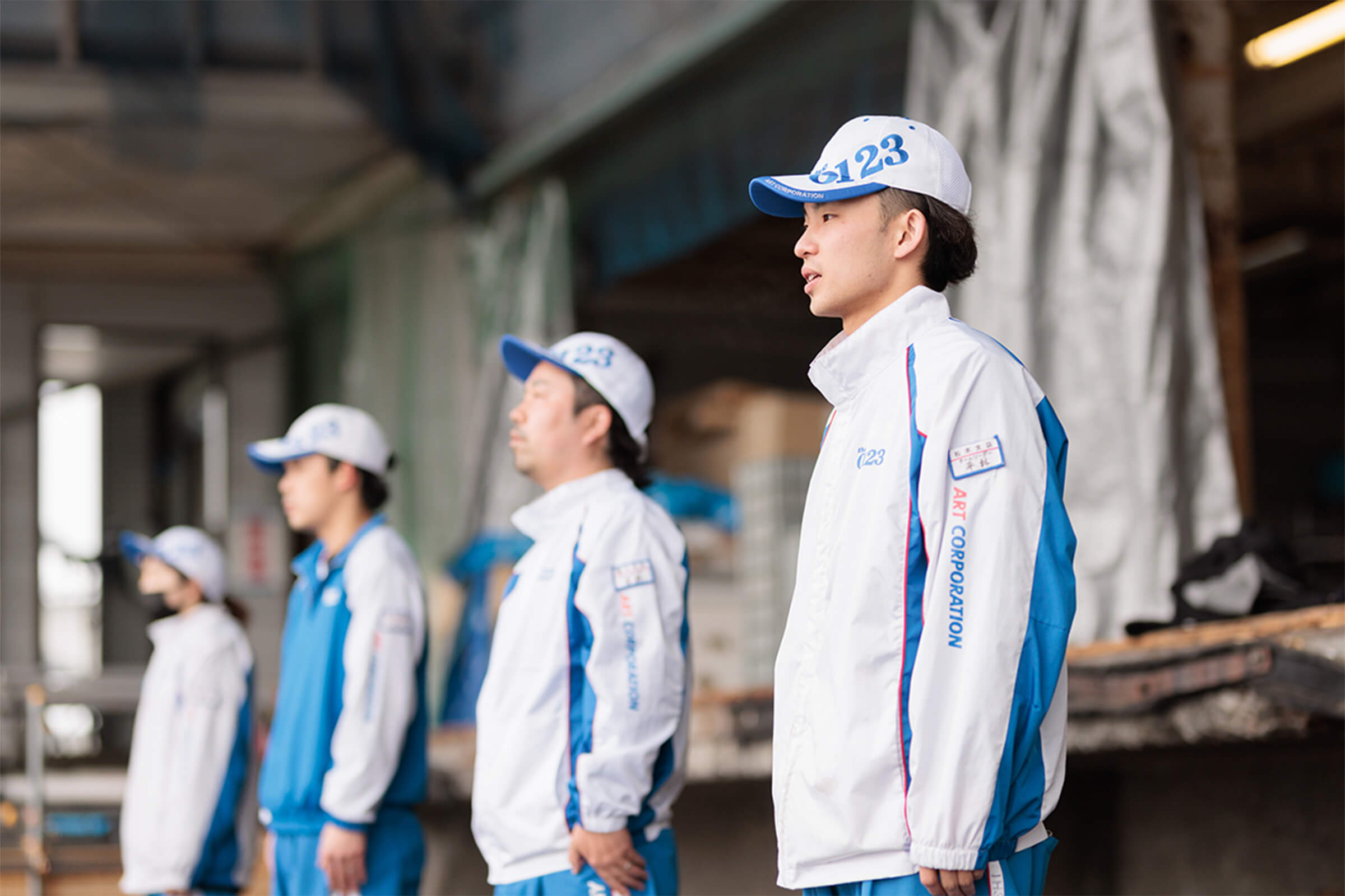 服装・身だしなみ点検、連絡事項を確認。『事故ゼロへの挑戦』を唱和します。